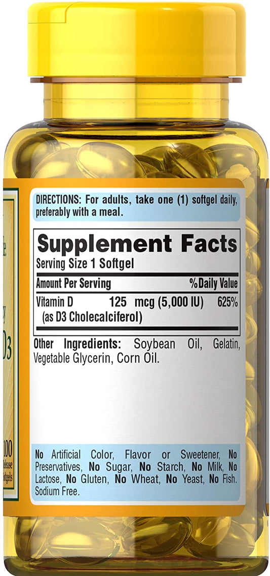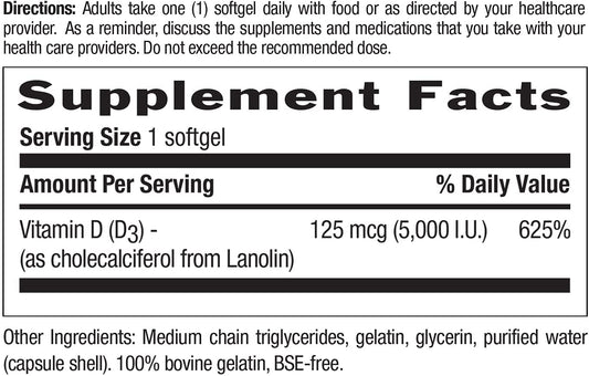 Vitamin D3 125 Mcg (5000 IU) 100 Softgels