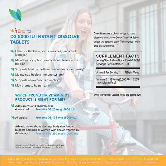 Vitamin D3 5000 IU Under The Tongue Instant Dissolve Tablets - 125 mcg x 100 Tablets
