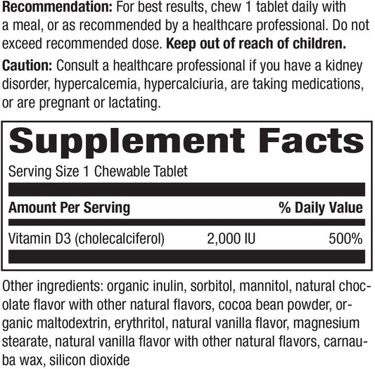 Vitamin D3 Extra Strength, Sugar-Free, Chocolate Flavored, 90 Chewables