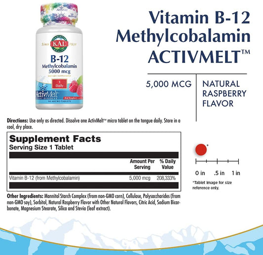 5000 Mcg Ultra B-12 Methylcobalamin Tablets, Raspberry, 90 Count