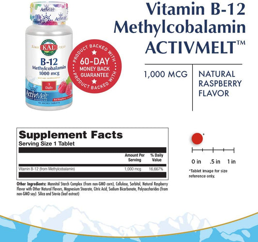 B-12 Methylcobalamin Active Melt Raspberry Tablets, 1000 mcg, 90 Count