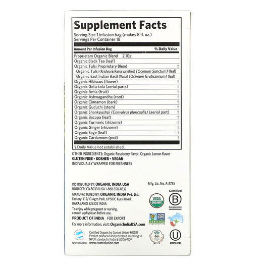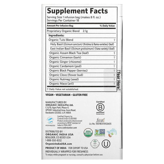 Tulsi Tea, Masala Chai, 18 Infusion Bags, 1.33 oz (37.8 g)