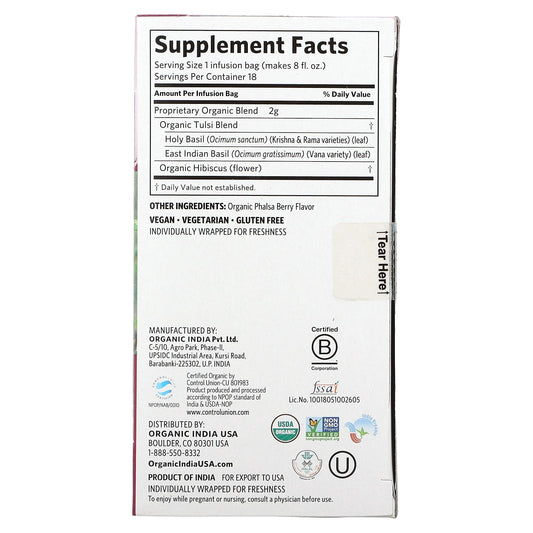 Tulsi Tea, Hibiscus, Caffeine-Free, 18 Infusion Bags, 1.27 oz (36 g)