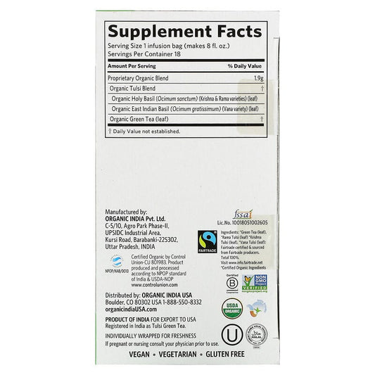 Tulsi Tea, Green, 18 Infusion Bags, 1.21 oz (34.2 g)