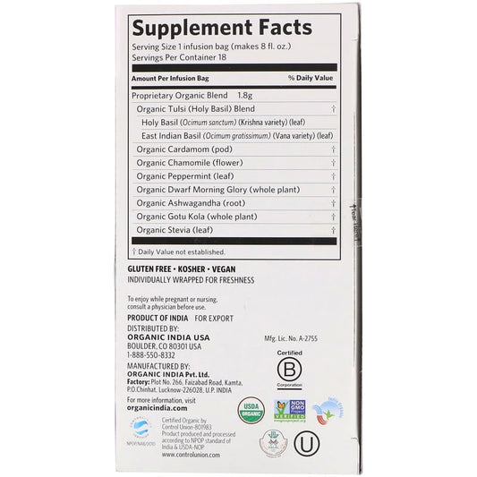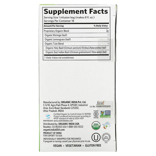 Tulsi Tea, Moringa, Caffeine Free, 18 Infusion Bags, 1.27 oz (36 g)