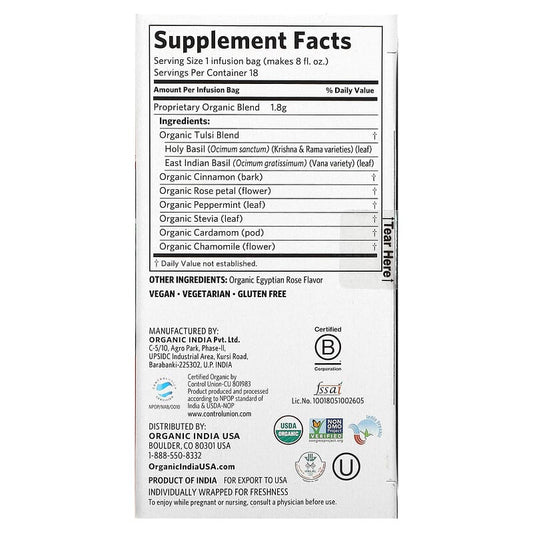 Tulsi Tea, Sweet Rose, Caffeine Free, 18 Infusion Bags, 1.01 oz (28.8 g)