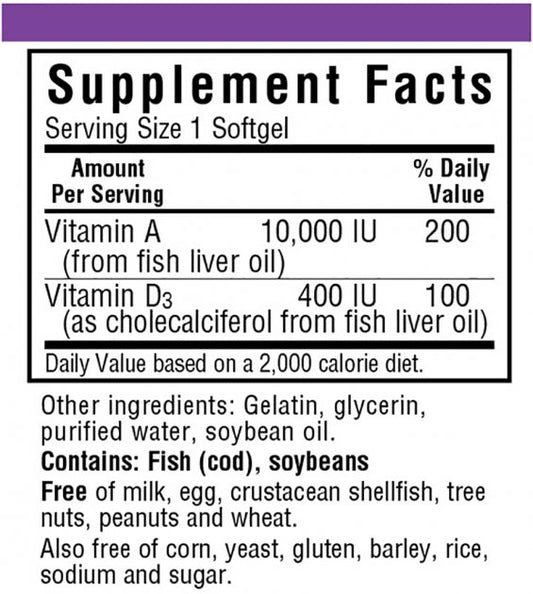 Bluebonnet Nutrition, Vitamin A & D3, 10,000 mcg, 100 Softgels