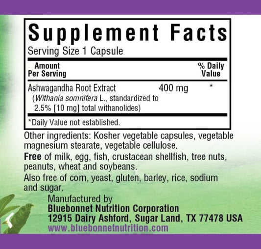 Bluebonnet Nutrition Standardized Ashwagandha Root Extract, 60 Count