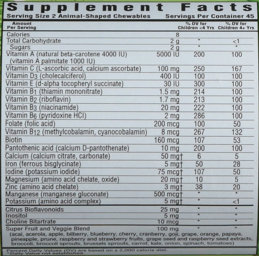 Rainforest Animalz Whole Food Based Multiple Chewable Tablets, 90 Chewable Tablets, Mixed Flavors