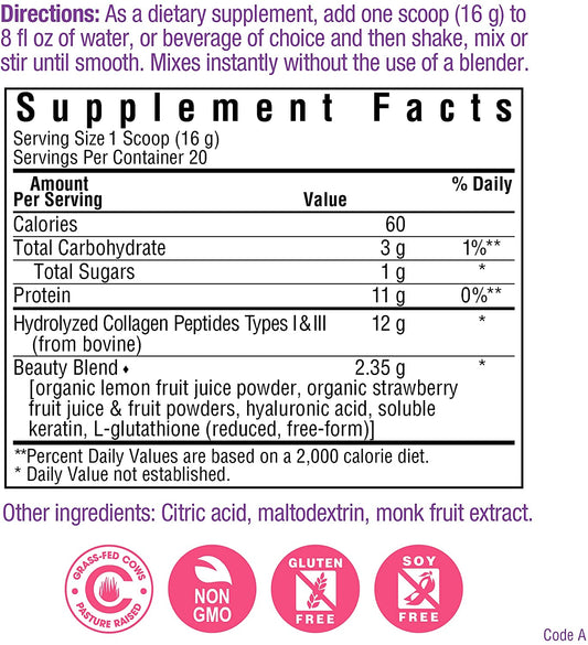 Collagen Refreshers Beauty Powder, 11.29 oz, 20 Servings, Strawberry Lemon Flavor