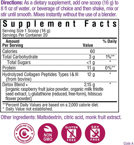 Collagen Refreshers Detox Powder, 11.29 oz, 20 Servings, Hibiscus Berry Flavor