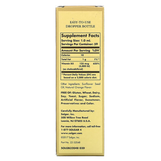Liquid Vitamin D3, Natural Orange Flavor, 125 mcg (5,000 IU), 2 fl oz (59 ml)
