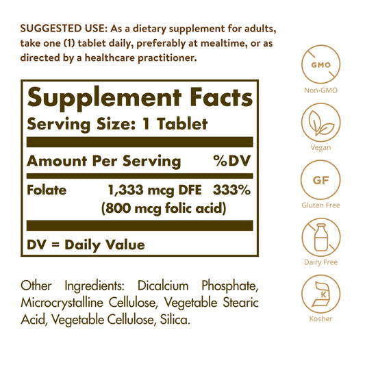 Folate 1,333 MCG DFE (Metafolin® 800 mcg) Tablets, 100 ct