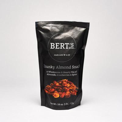 A deliciously addictive, gift able snack, is handmade in small batches out of SF. Wholesome, hearty, packed with a big crunch. Our Chunky Almond Snack is a hearty and delicious blend of whole almonds, dried cranberries, whole grain oats, cinnamon, and organic maple syrup.