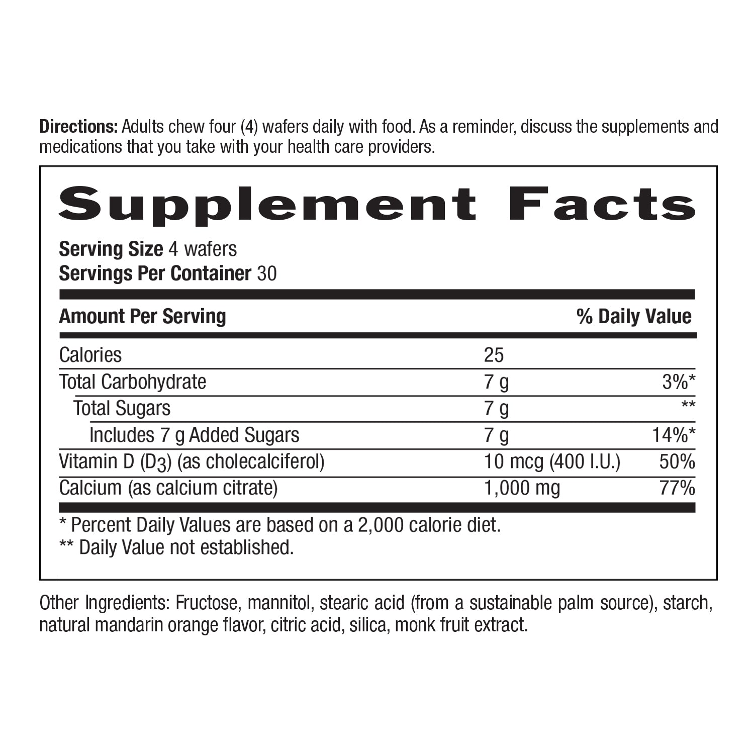 Calcium Citrate with Vitamin D3 Chewable Wafers in a delicious natural orange flavor – formulated to maximize calcium absorption and support the body’s availability of calcium.**
