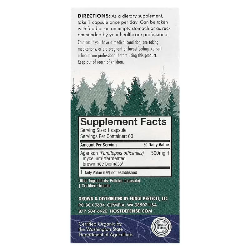Host Defense, Mushrooms™, Agarikon, 60 Capsules (500 mg per Capsule)
