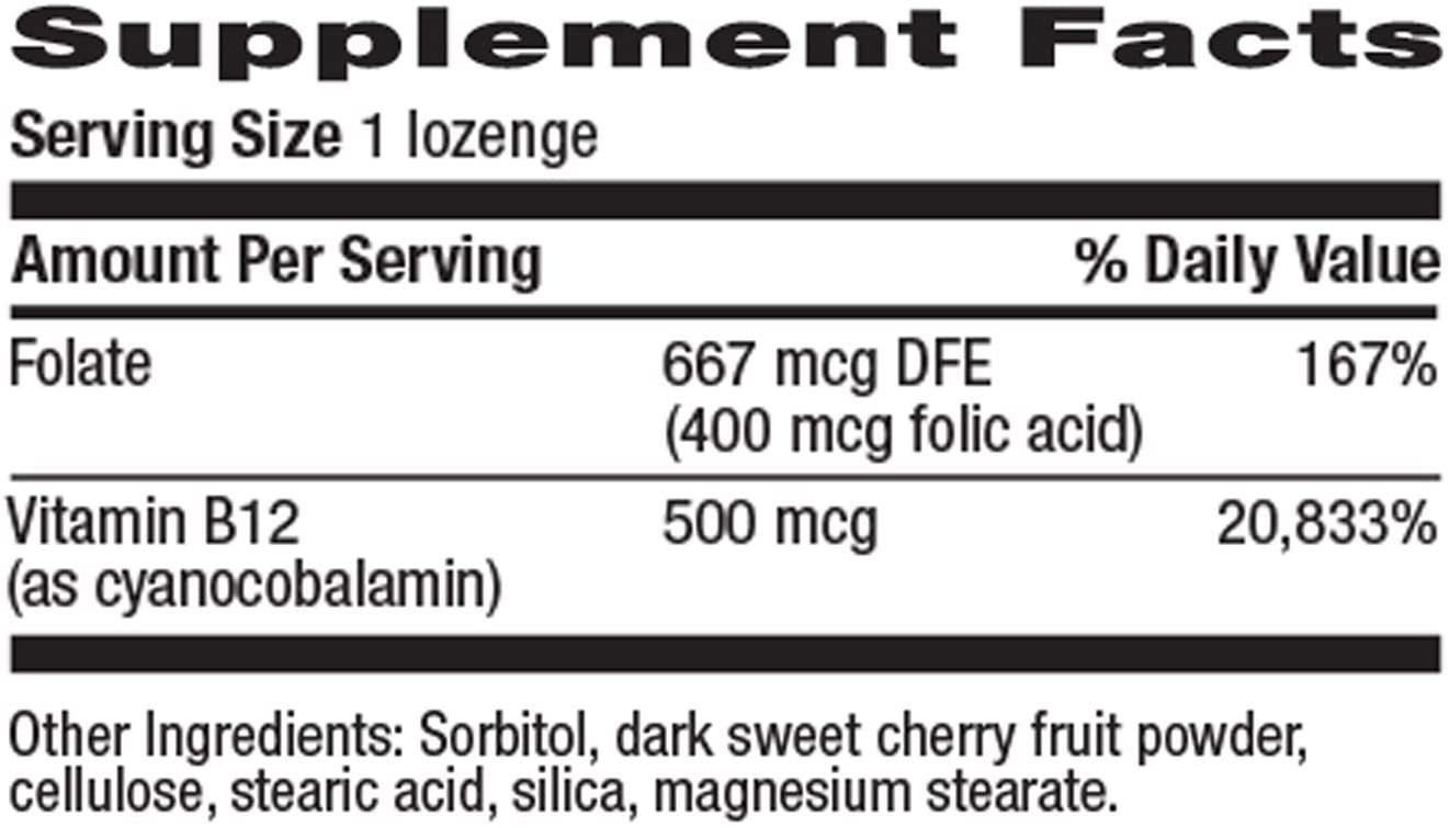 Vitamin B-12, 500 mcg, with Folic Acid (Sublingual Lozenges), 100-Count